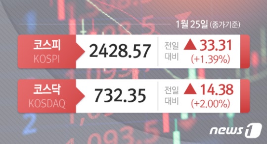 [시황종합] 코스피 1.39% 오른 2428선 마감…시총 상위주 상승 견인